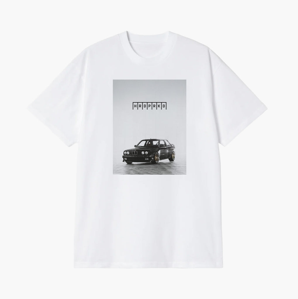 HRDPRKD branded tee with our ORGNLM3 shot in our new photo studio. Comes in Alpine White. Premium fit t-shirt made from 100% ring spun combed Cotton with side seams and a ribbed collar.